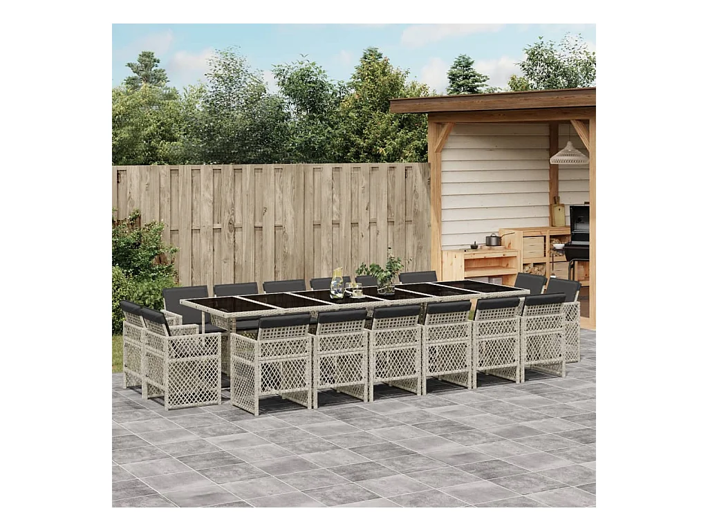 Andaril Ensemble à manger de jardin coussins 17 pcs Résine tressée Gris