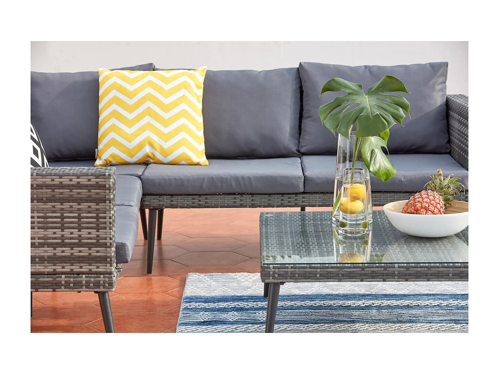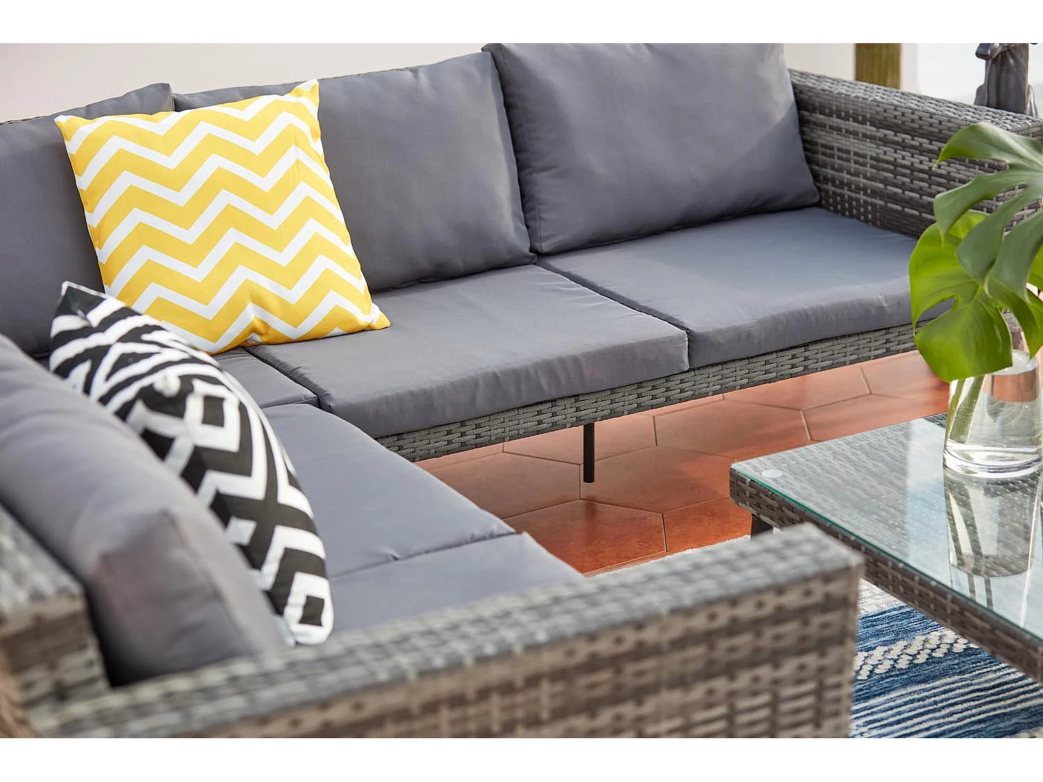 Salon de jardin bas 5 places en résine tressée gris TEFARI