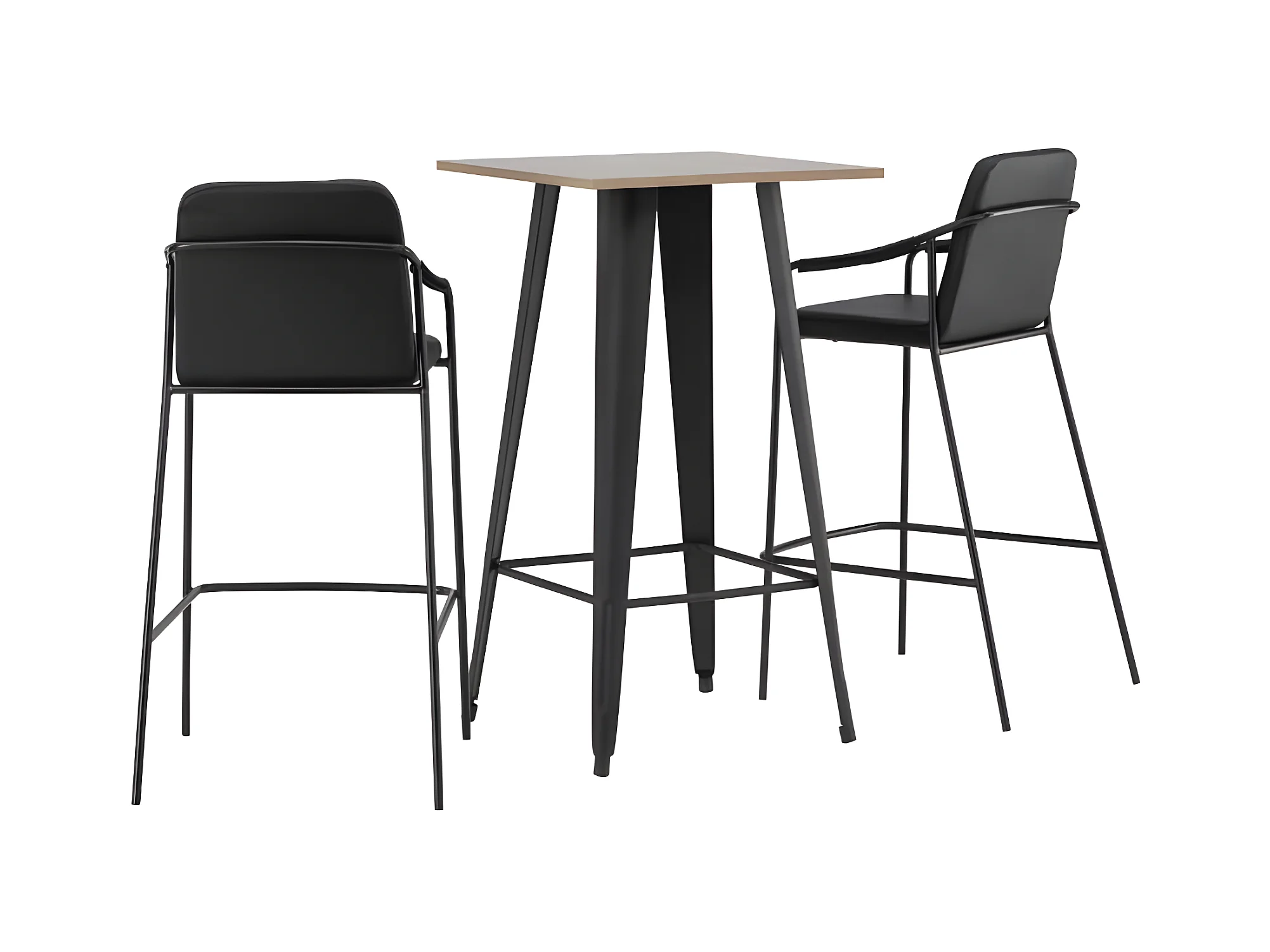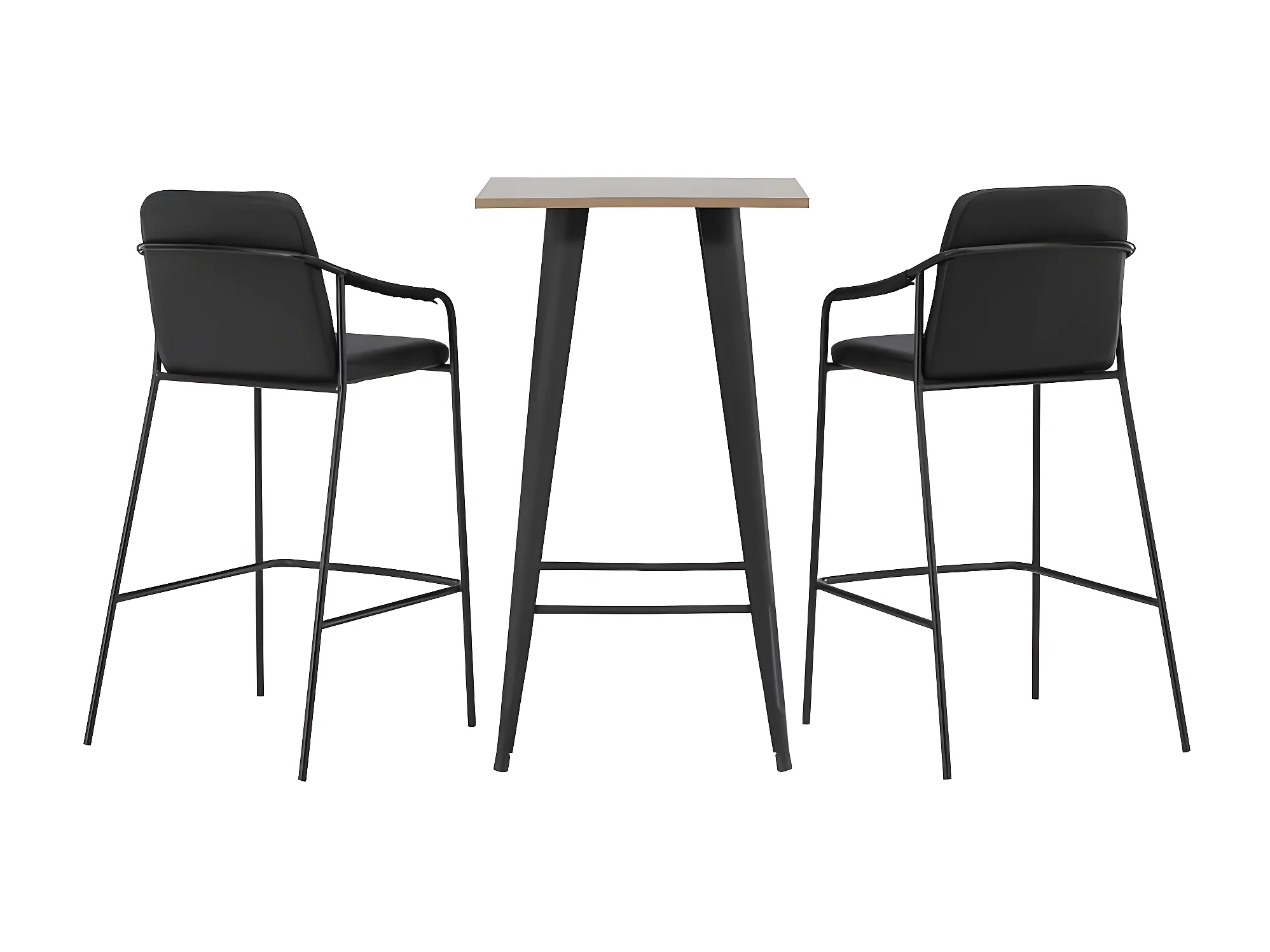 Tempe ensemble de meubles de bar table de bar noyer décor et 2 Tvist tabourets de bar noir.
