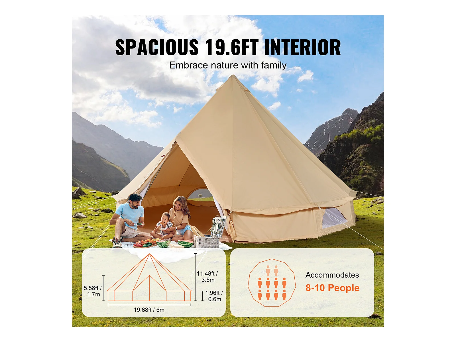 Tente Cloche Toile SucceBuy, 4 Saisons 6 m pour Camping Familial avec Trou de Poêle