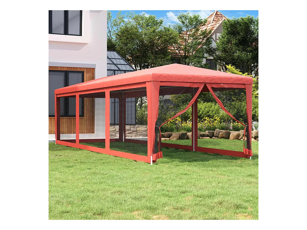 Tente de fête avec 8 parois latérales en maille Rouge 3x9m PEHD