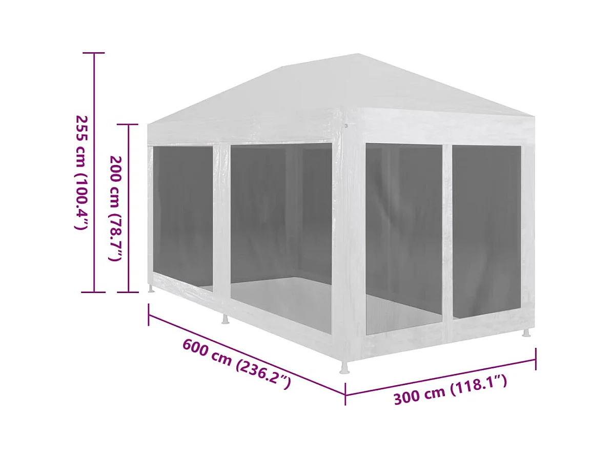 Tente de réception avec 6 parois en maille 4 x 3 m