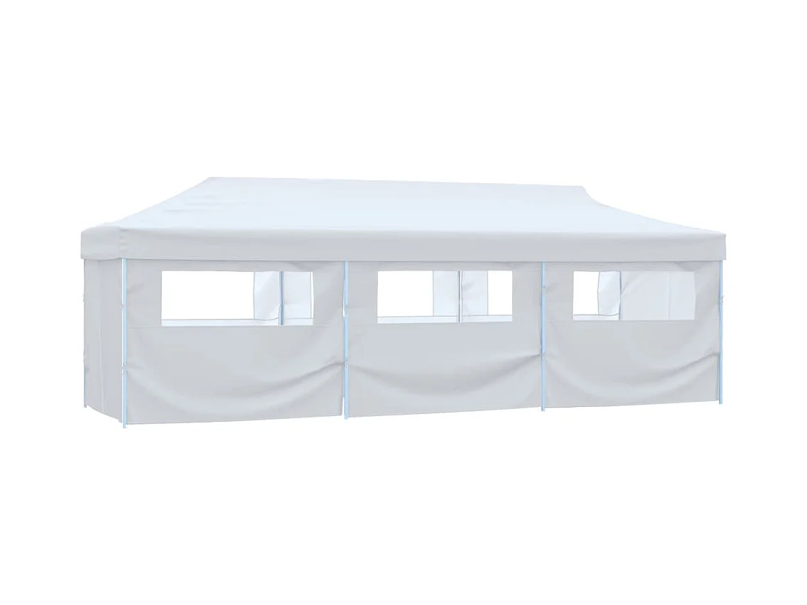 Tente de réception escamotable avec 8 parois 3 x 9 m Blanc