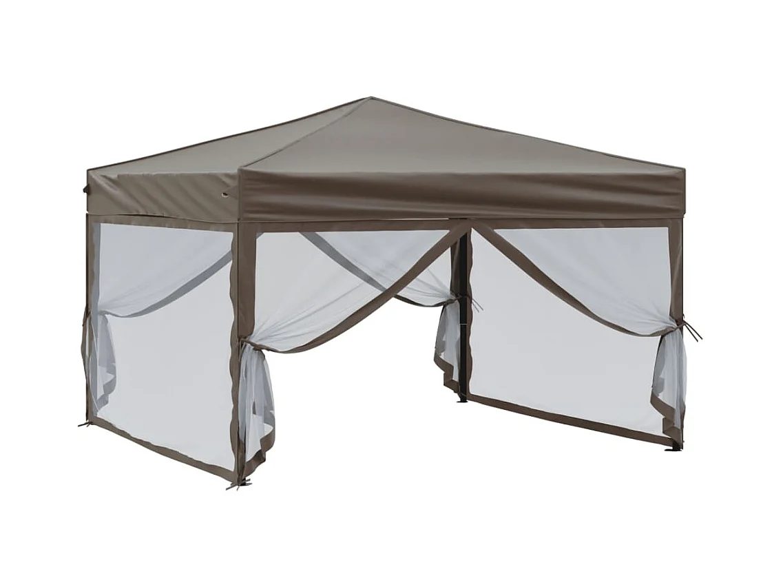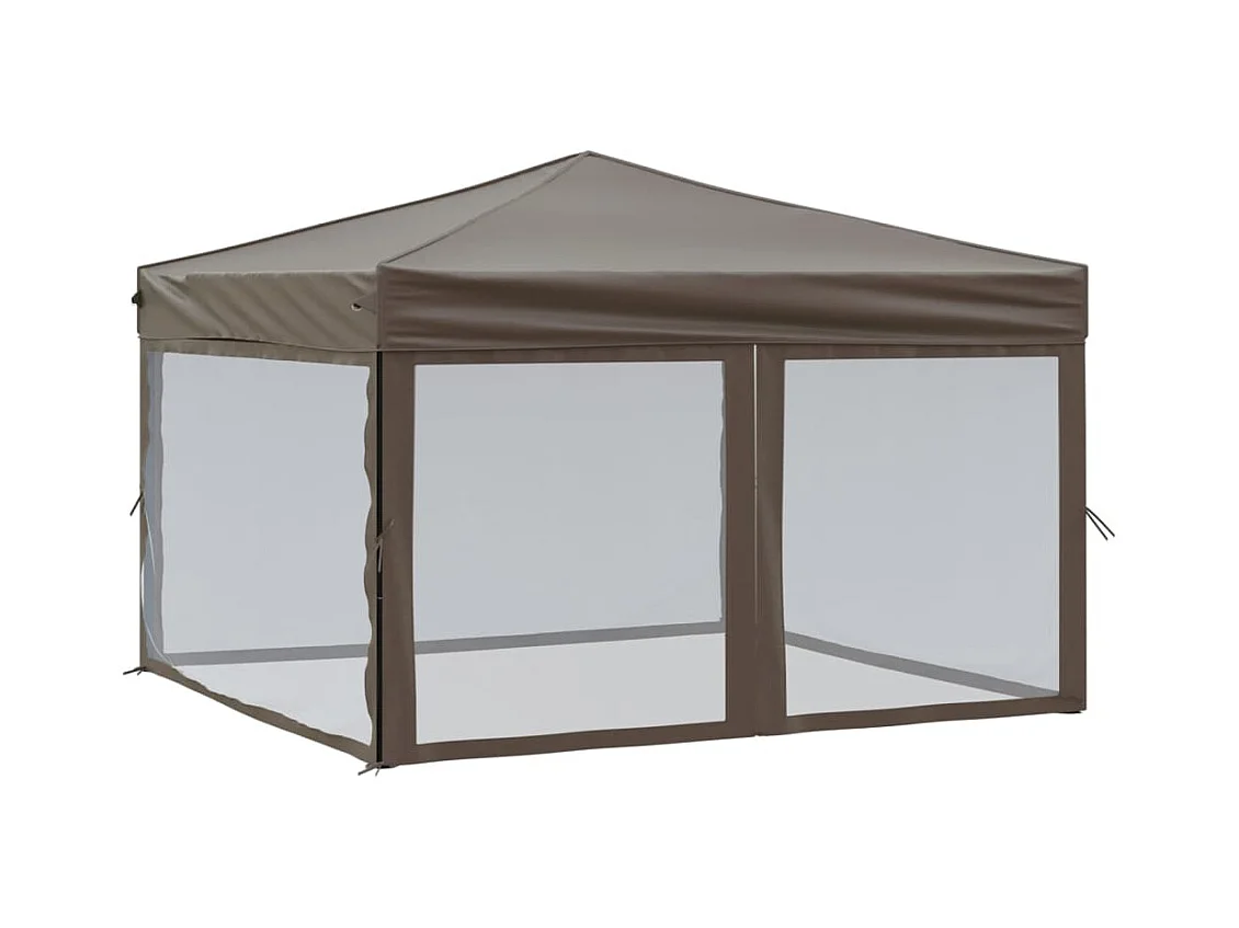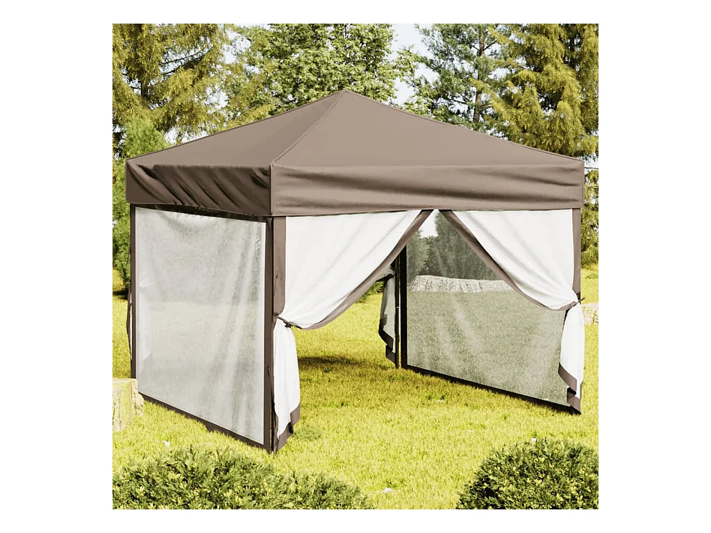 Tente de réception pliable escamotable 3 parois latérales taupe