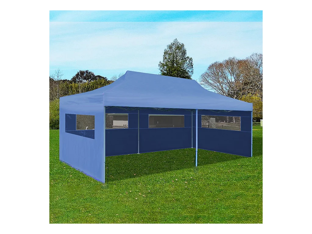 Tente pliable avec 4 parois latérales 3 x 4,5 m Bleu