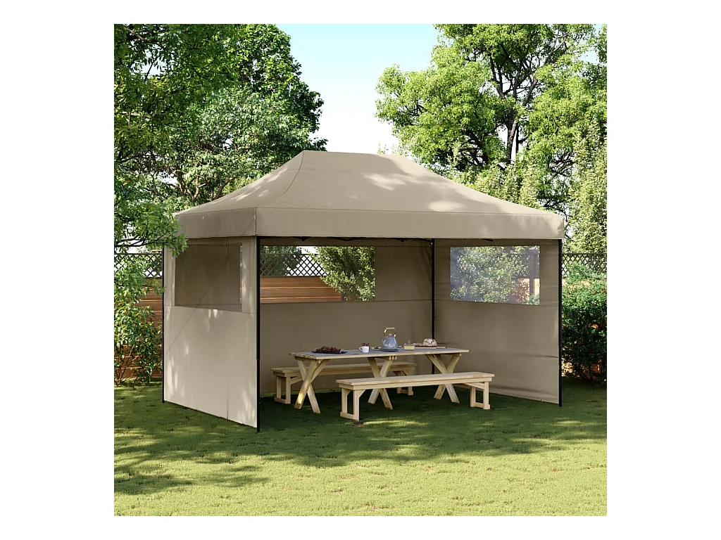 Tente de réception pliable escamotable 4 parois latérales taupe