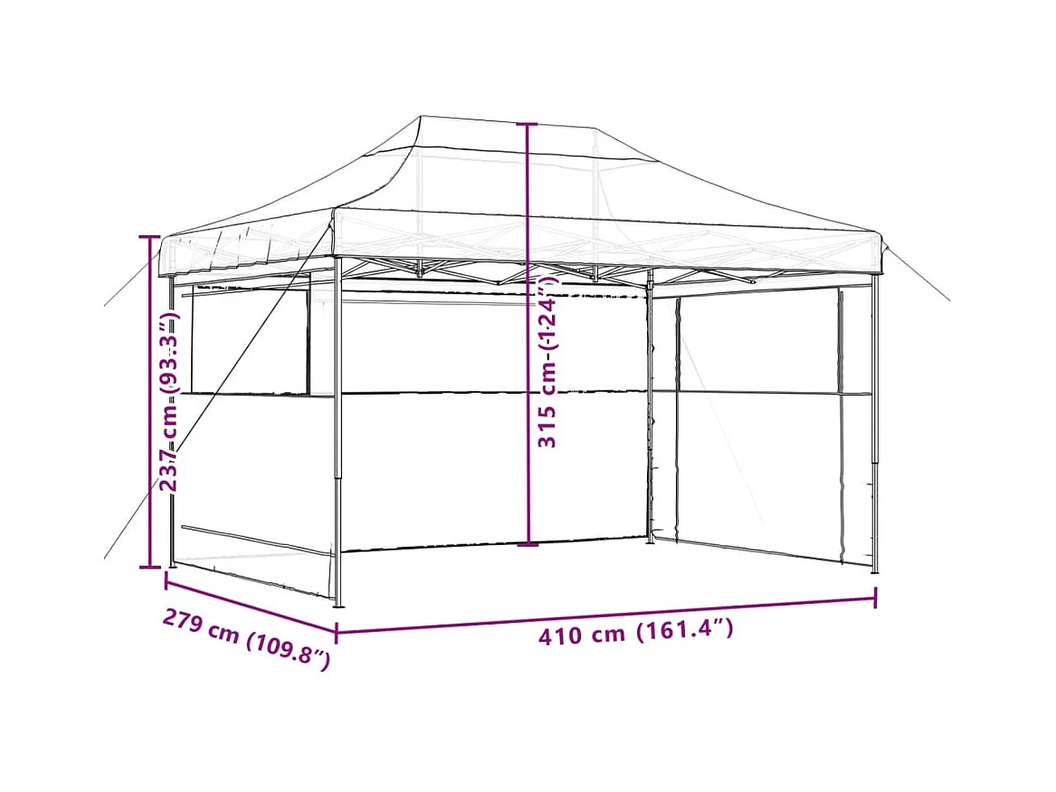 Tente de réception pliable escamotable taupe 410x279x315 cm