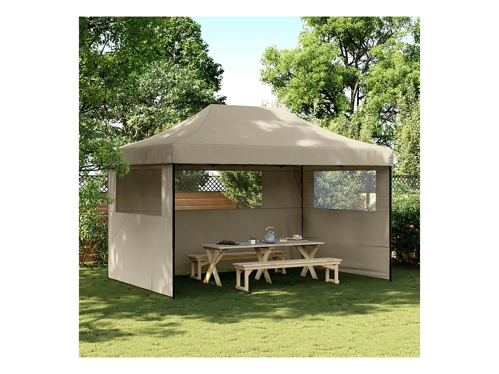 Tente de réception pliable escamotable 4 parois latérales taupe