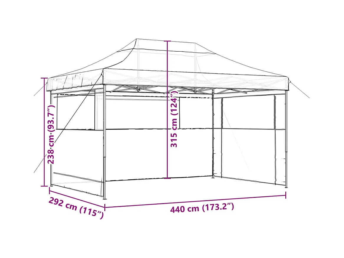 Tente de réception pliable escamotable bordeaux 440x292x315 cm