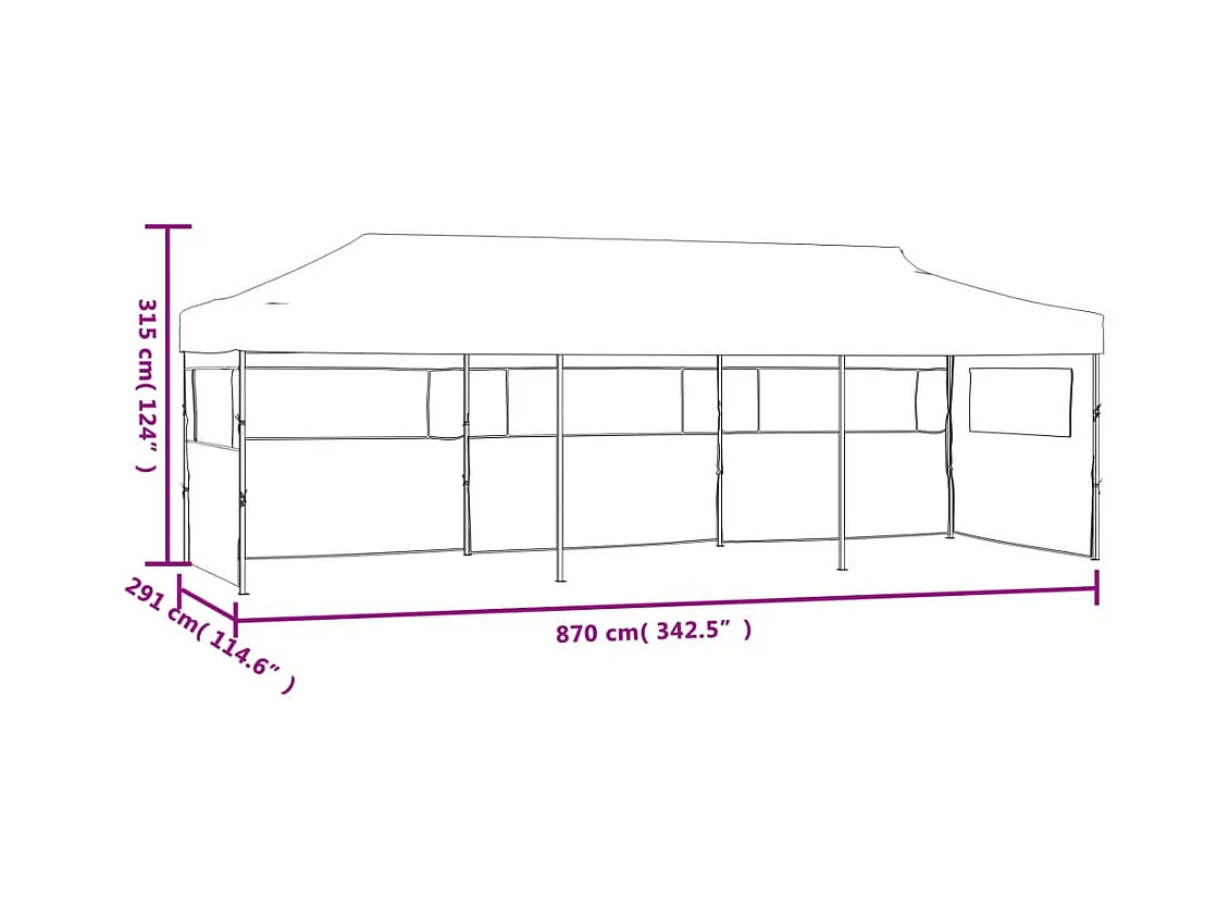 Tente de réception pliable escamotable avec 5 parois 3x9m crème