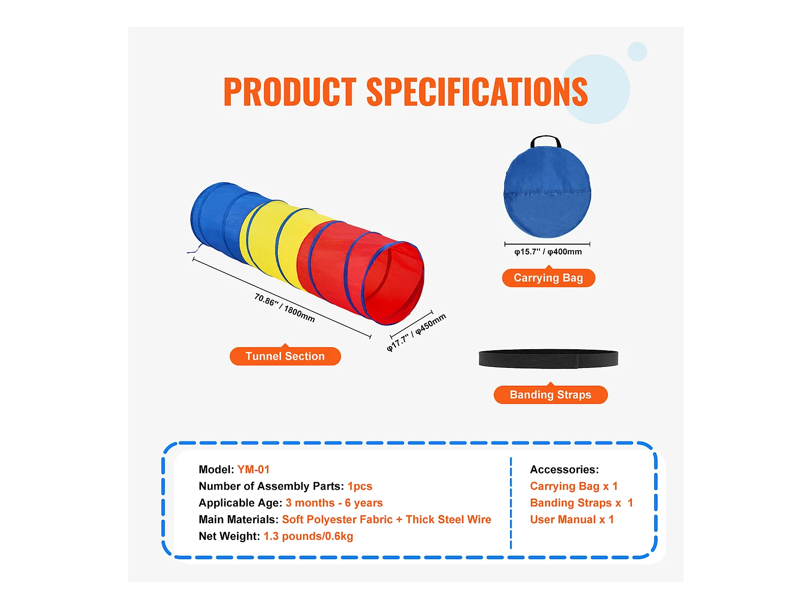 Tente SucceBuy Tunnel Rampant Escamotable pour Enfants, pour Tout-Petits et Animaux de Compagnie avec Étui de Transport