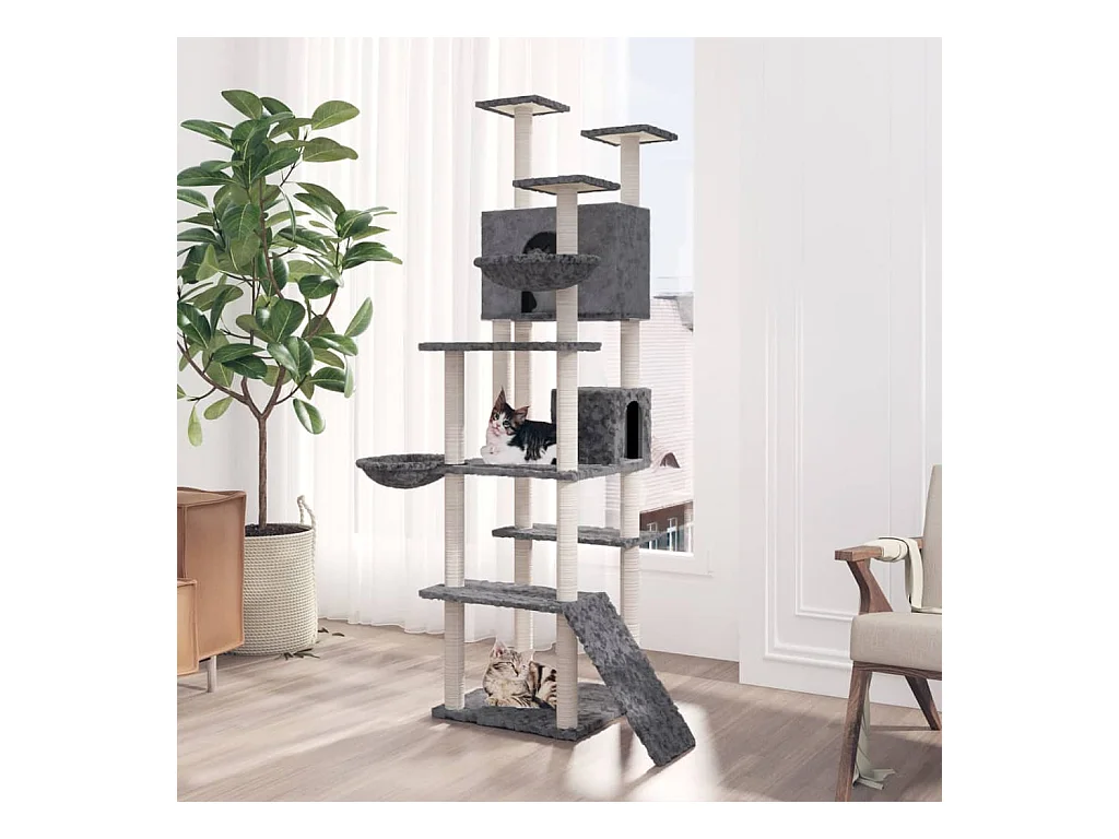 Arbre à chat avec griffoirs en sisal Gris foncé 191 cm