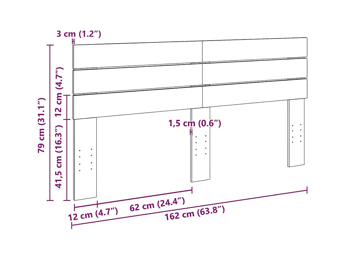 Tête de lit murale 159,5x3x110 cm Bois massif de pin