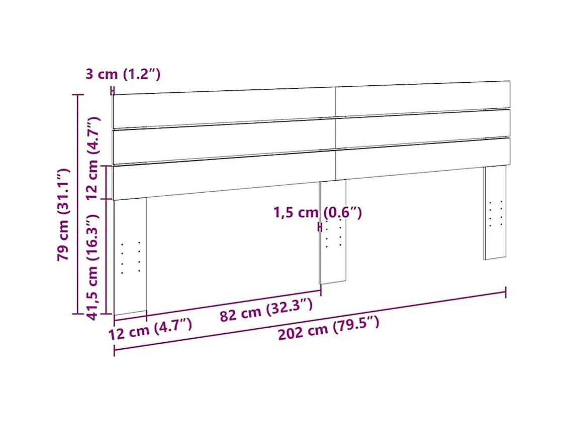 Tête de lit Marron cire 200.5 x 3 x 80 cm Bois massif en pin