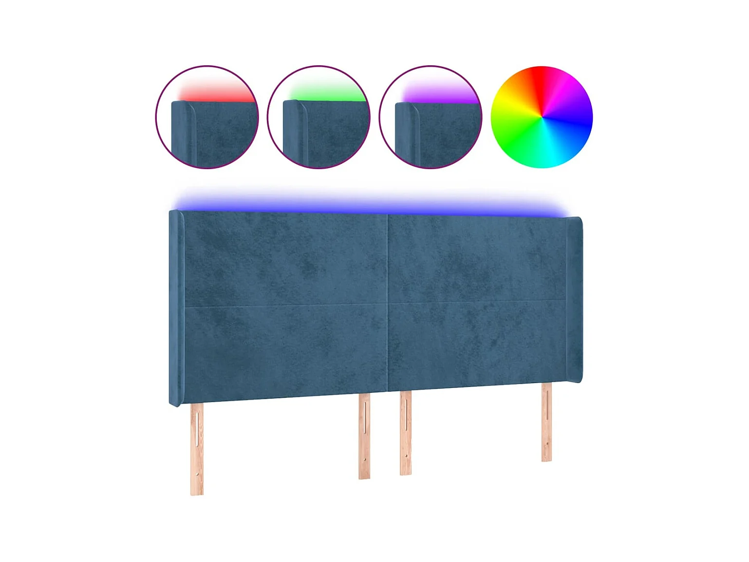 Tête de lit à LED Bleu foncé 163x16x118/128 cm Velours POI28296 BonneVie Meuble