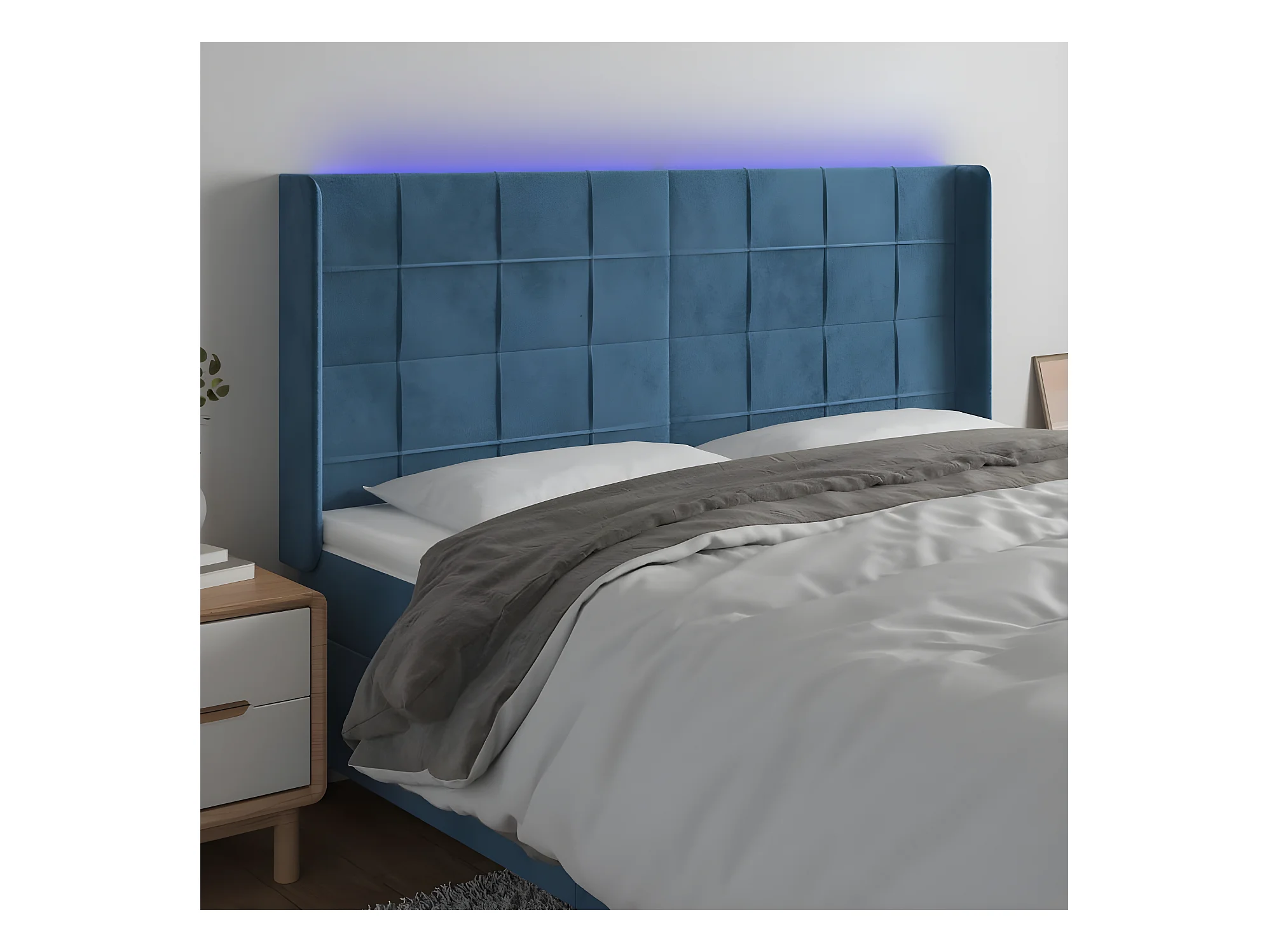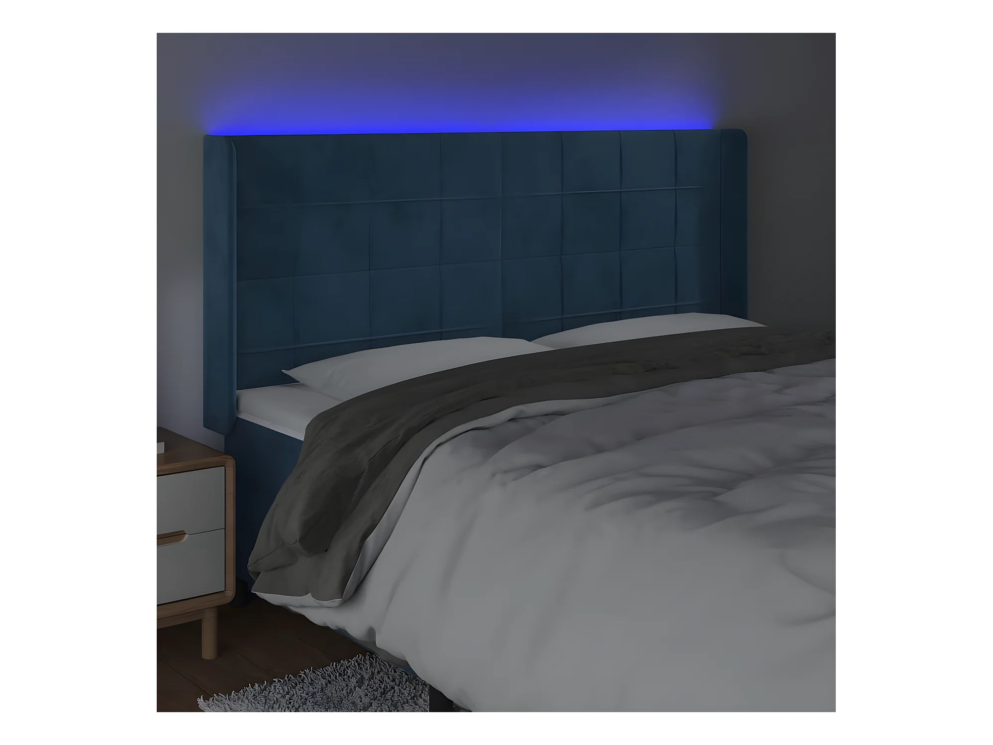 Tête de lit à LED Bleu foncé 147x16x118,128 cm Velours LKC34531 BonneVie Meuble