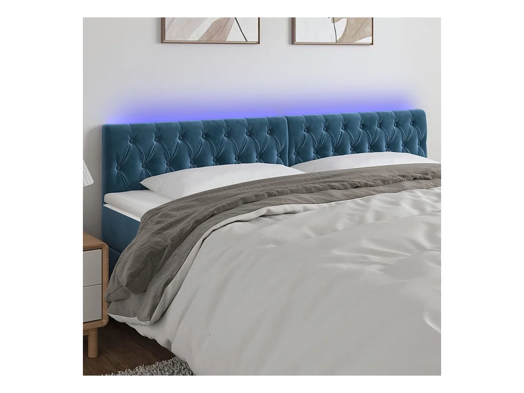 Tête de lit à LED Bleu foncé 180x7x78/88 cm Velours