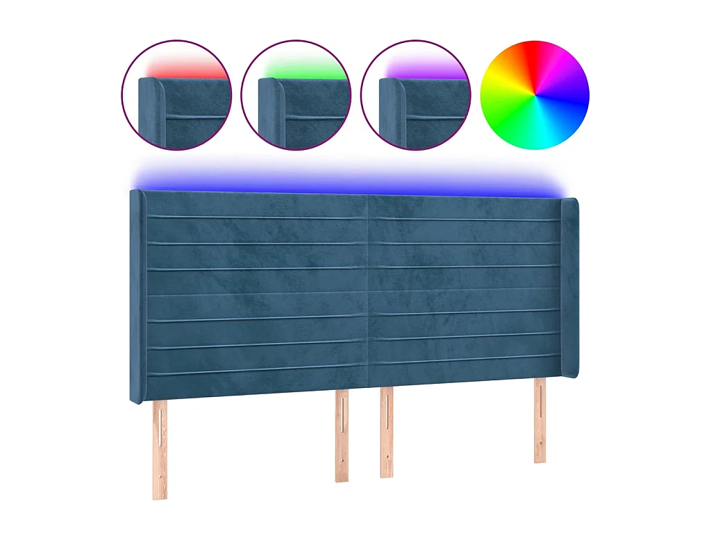 Tête de lit à LED Bleu foncé 163x16x118/128 cm Velours POI45390 BonneVie Meuble