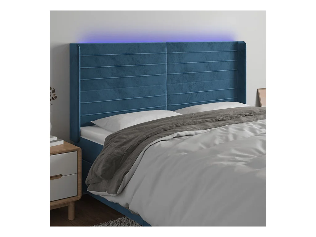 Tête de lit à LED Bleu foncé 183x16x118,128 cm Velours PEWV43137 BonneVie Meuble