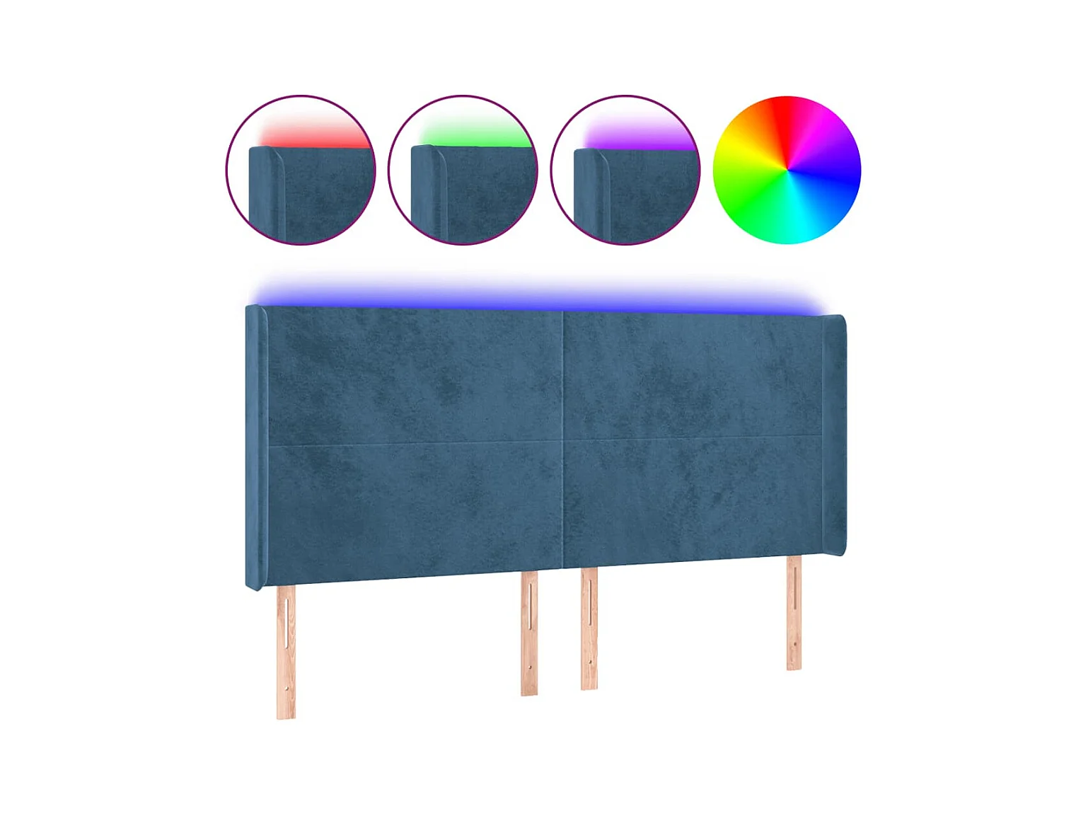 Tête de lit à LED Bleu foncé 163x16x118/128 cm Velours POI45390 BonneVie Meuble