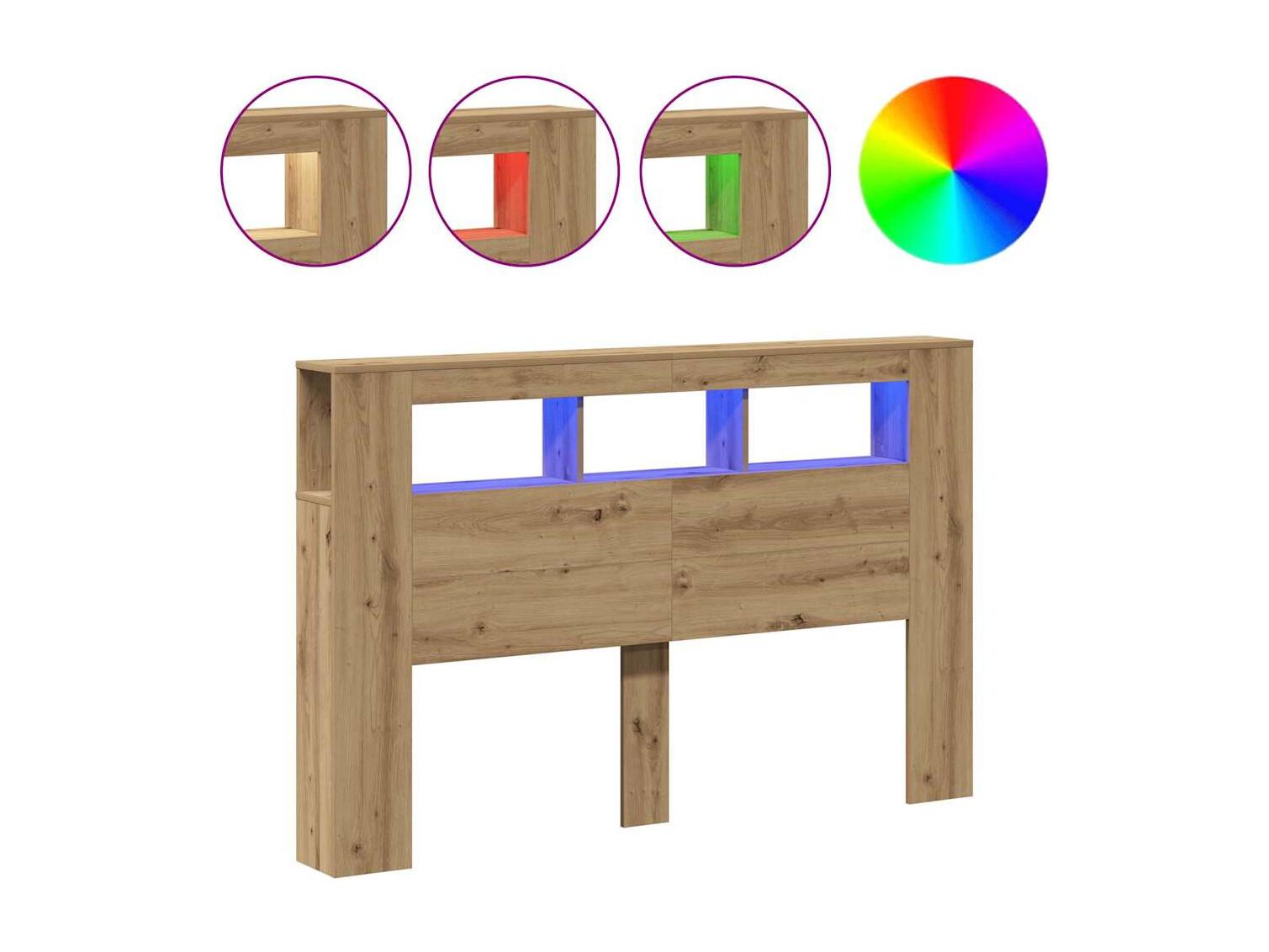 Tête de lit à LED chêne artisanal 160x18,5x103,5 cm