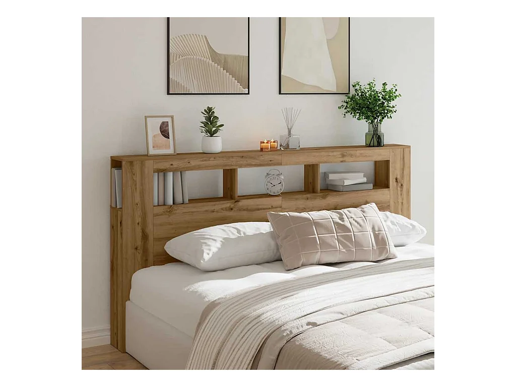 Tête de lit à LED chêne artisanal 180x18,5x103,5 cm