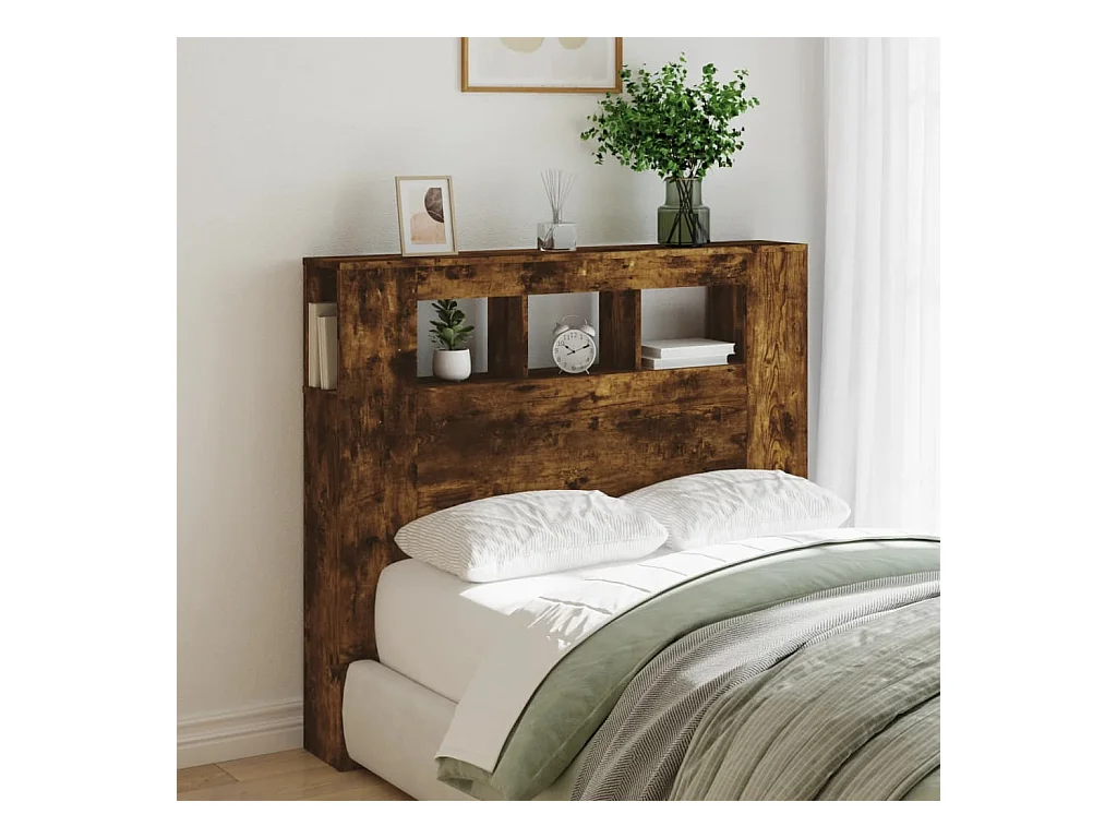 Tête de lit à LED chêne fumé 120x18,5x103,5cm bois d'ingénierie