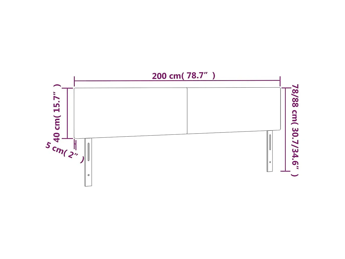 Tête de lit à LED Marron foncé 200x5x78/88 cm Tissu