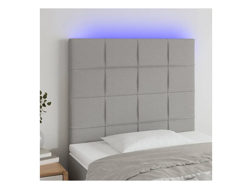Tête de lit à LED Gris clair 100x5x118/128 cm Tissu