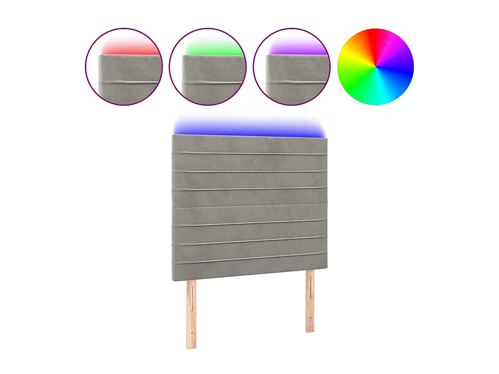 Tête de lit à LED Gris clair 100x5x118/128 cm Velours POI99633 BonneVie Meuble