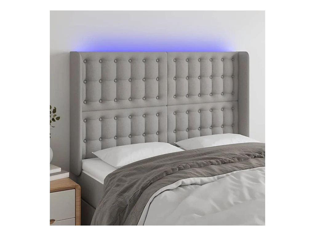 Tête de lit à LED Gris clair 147x16x118/128 cm Tissu