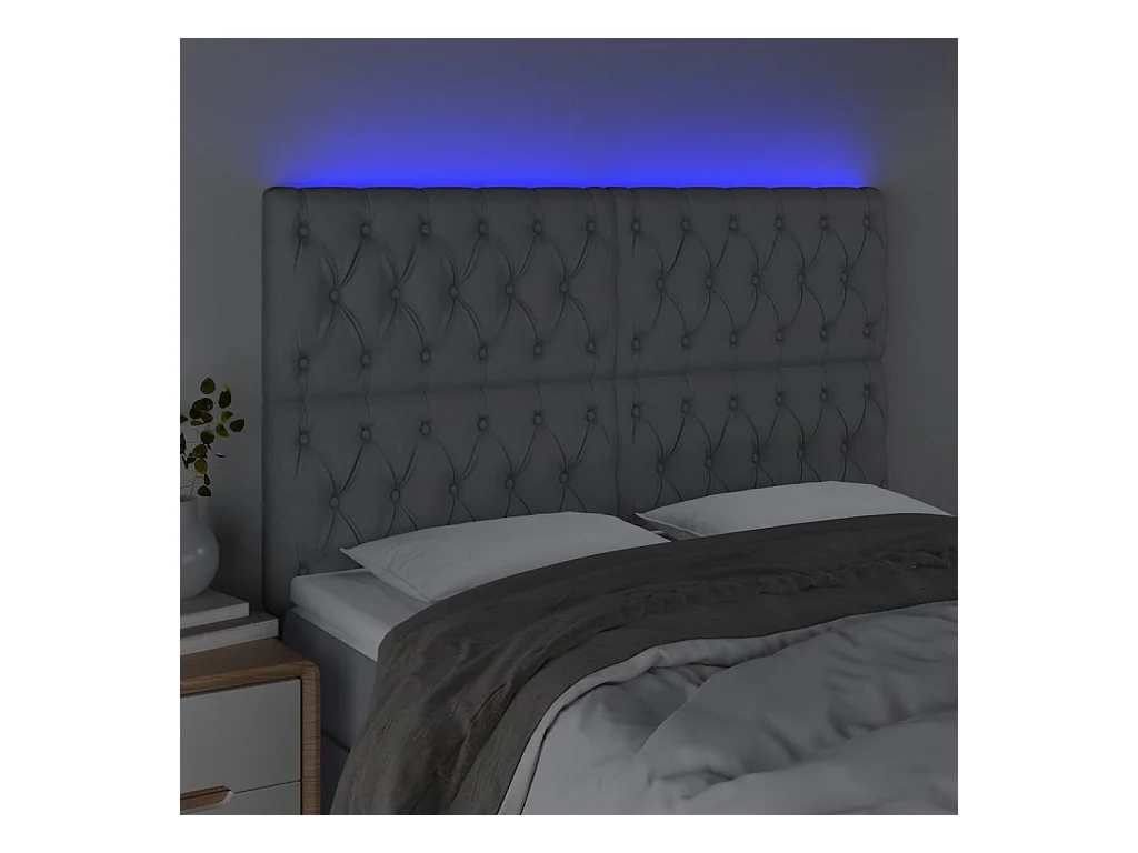 Tête de lit à LED Gris foncé 200x7x118/128 cm Tissu
