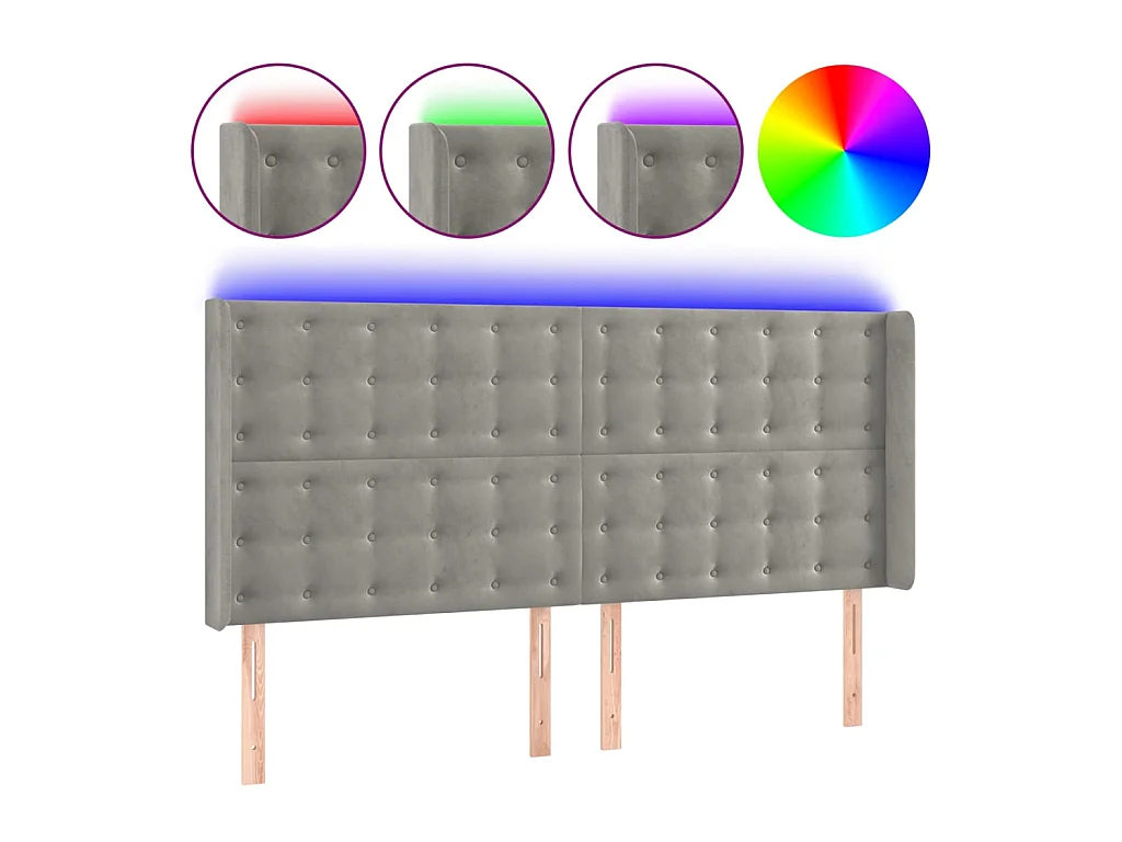 Tête de lit à LED Gris clair 163x16x118/128 cm Velours POI75684 BonneVie Meuble