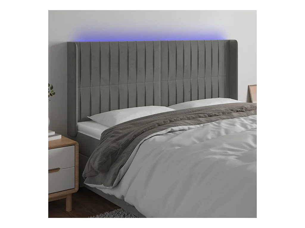 Tête de lit à LED Gris clair 147x16x118/128 cm Velours POI78750 BonneVie Meuble