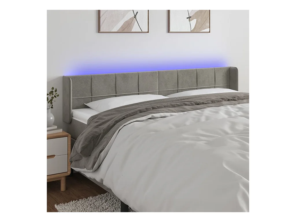 Tête de lit à LED Gris clair 163x16x78/88 cm Velours POI14464 BonneVie Meuble