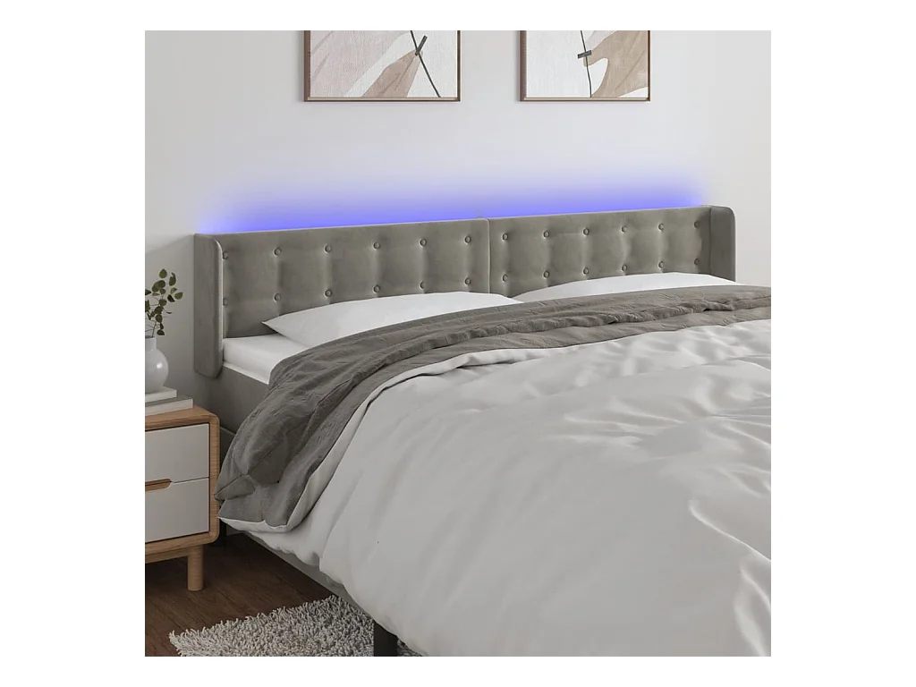 Tête de lit à LED Gris clair 163x16x78/88 cm Velours POI27610 BonneVie Meuble