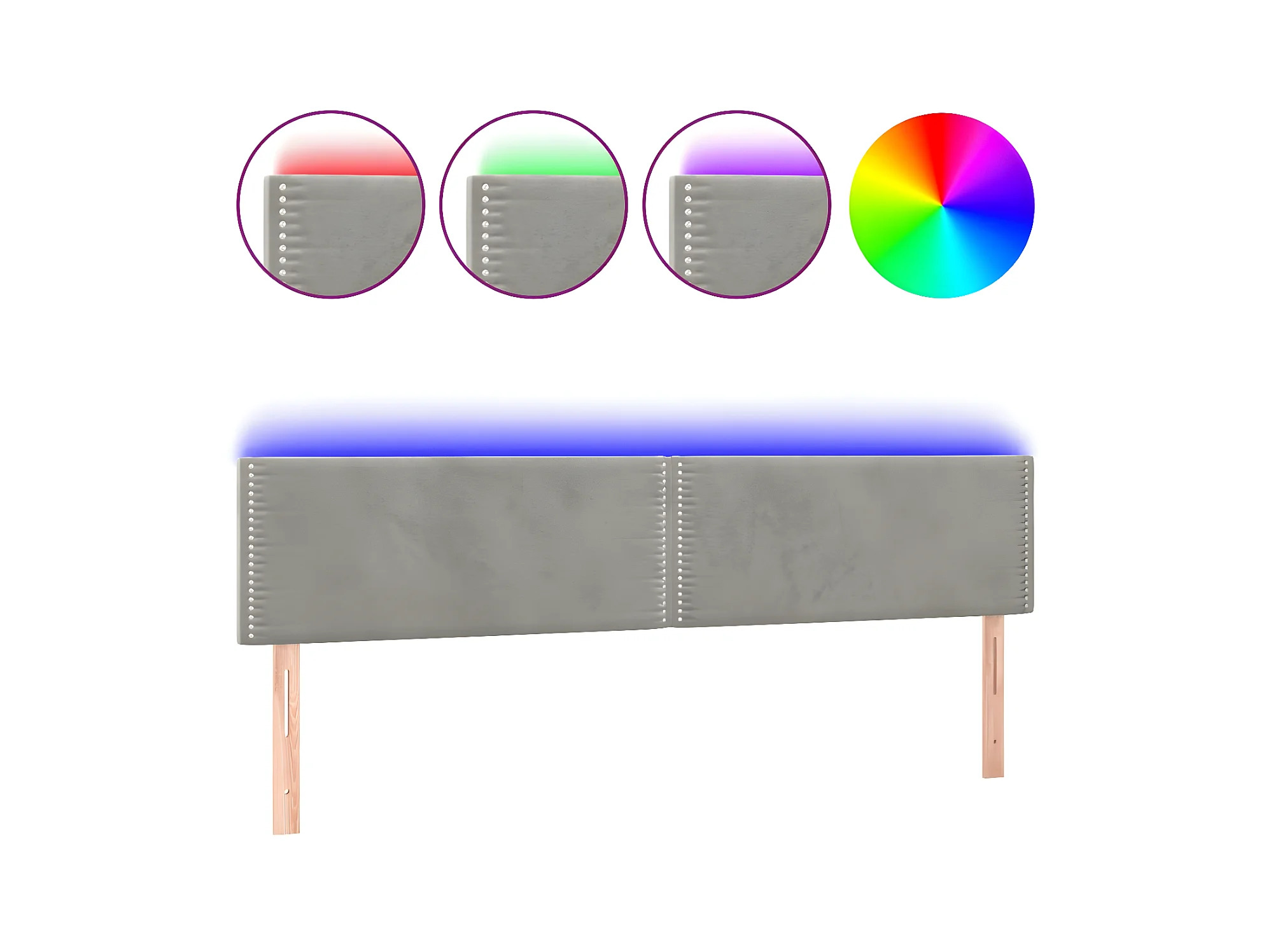 Tête de lit à LED Gris clair 200x5x78/88 cm Velours POI12471 BonneVie Meuble