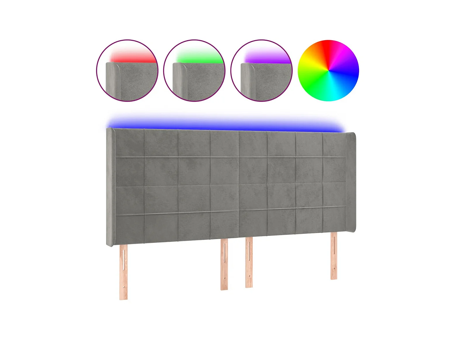 Tête de lit à LED Gris clair 203x16x118/128 cm Velours POI31341 BonneVie Meuble