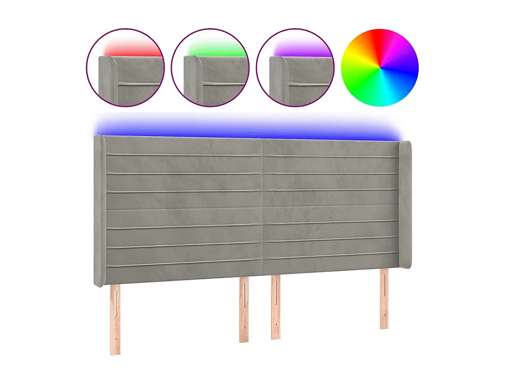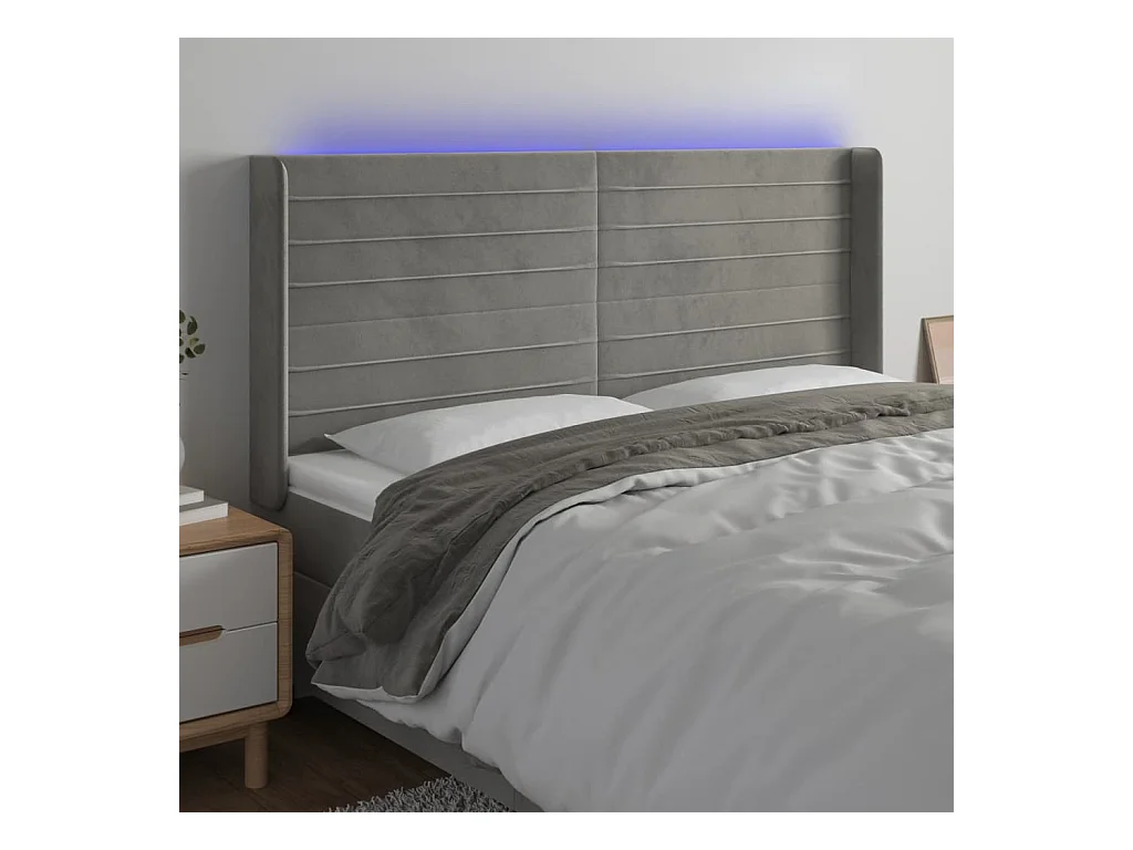 Tête de lit à LED Gris clair 147x16x118/128 cm Velours POI78750 BonneVie Meuble