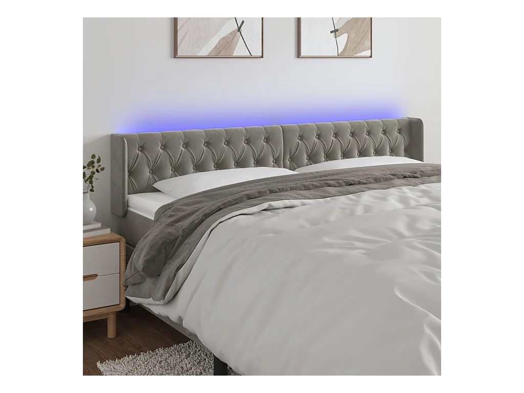 Tête de lit à LED Gris clair 203x16x118/128 cm Velours POI31341 BonneVie Meuble