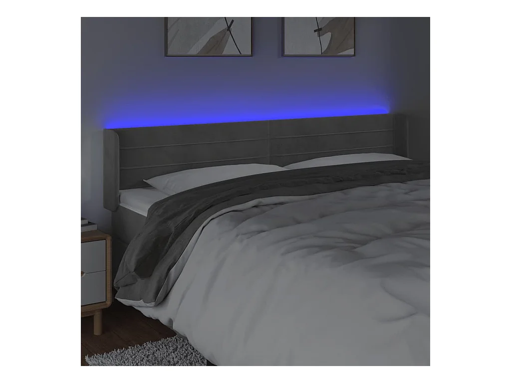 Tête de lit à LED Gris clair 203x16x78/88 cm Velours POI70644 BonneVie Meuble
