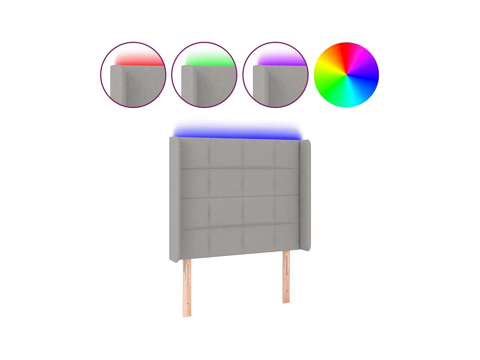 Tête de lit à LED Gris clair 103x16x118/128 cm Tissu POI14573 BonneVie Meuble
