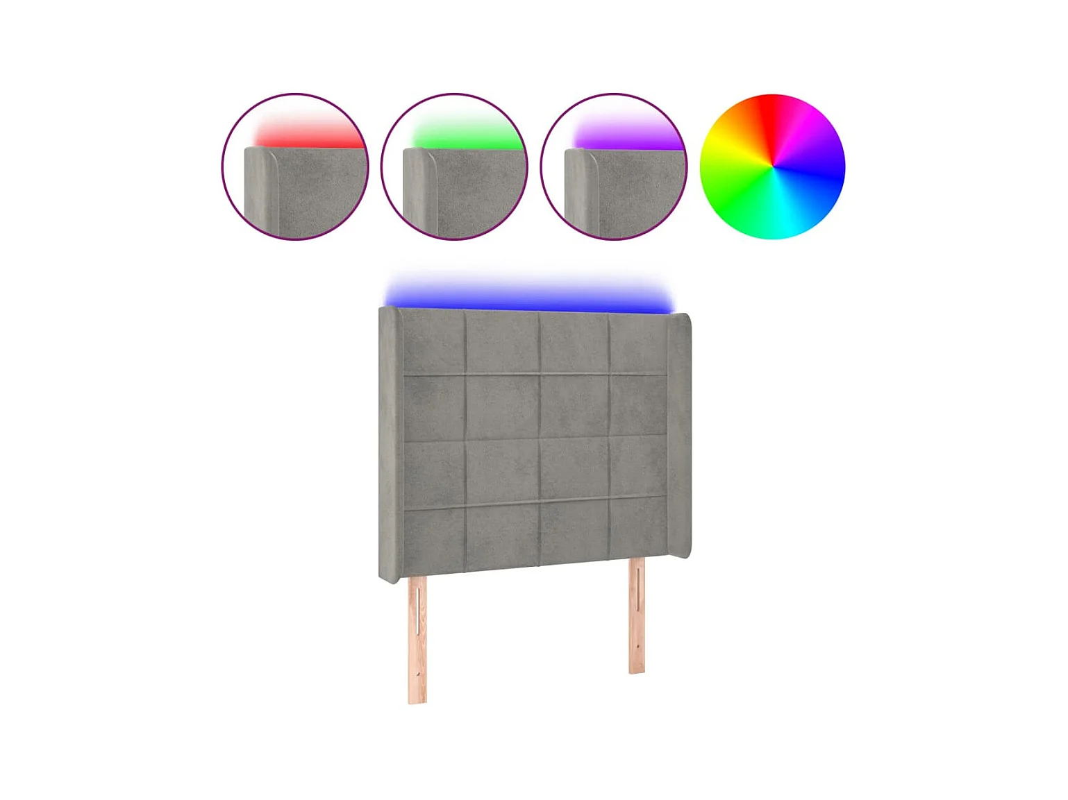 Tête de lit à LED Gris clair 83x16x118/128 cm Velours POI40521 BonneVie Meuble