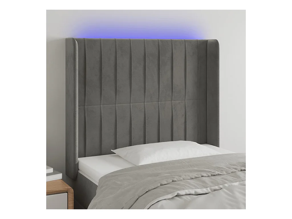 Tête de lit à LED Gris clair 83x16x118/128 cm Velours POI65459 BonneVie Meuble