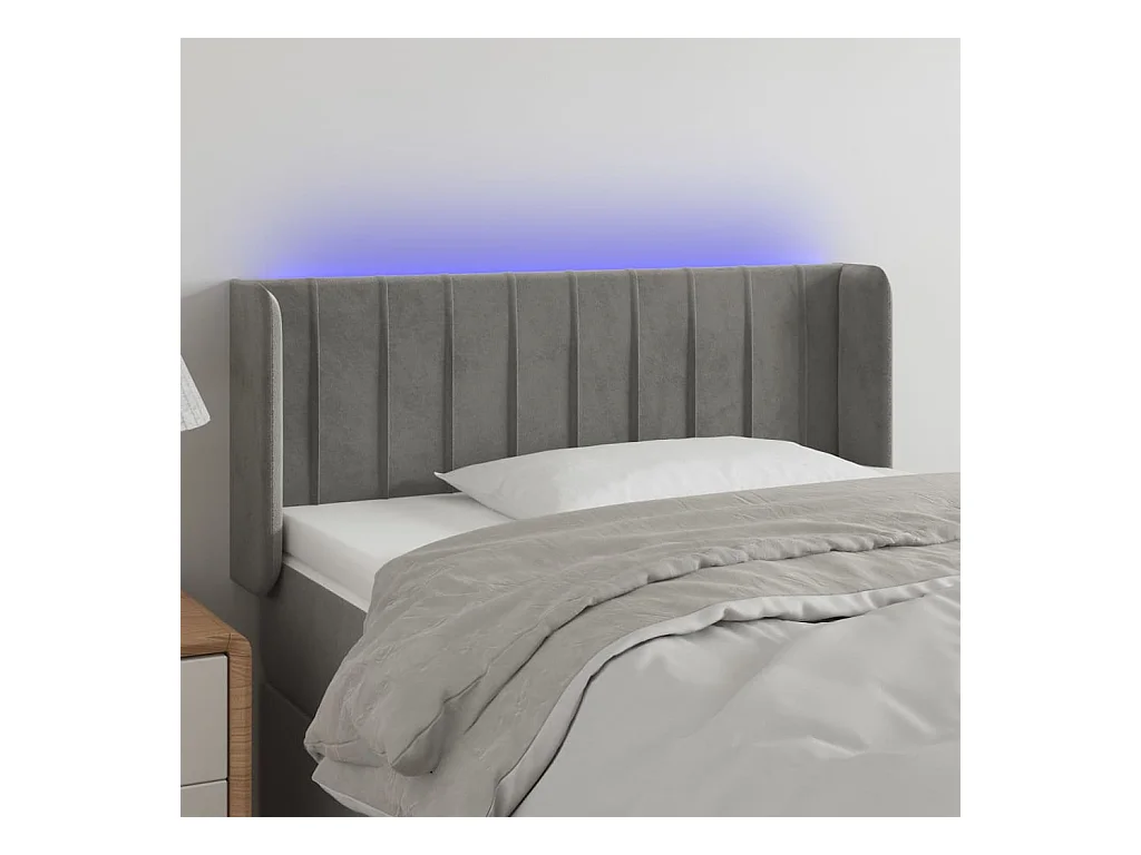 Tête de lit à LED Gris clair 93x16x78/88 cm Velours POI22239 BonneVie Meuble