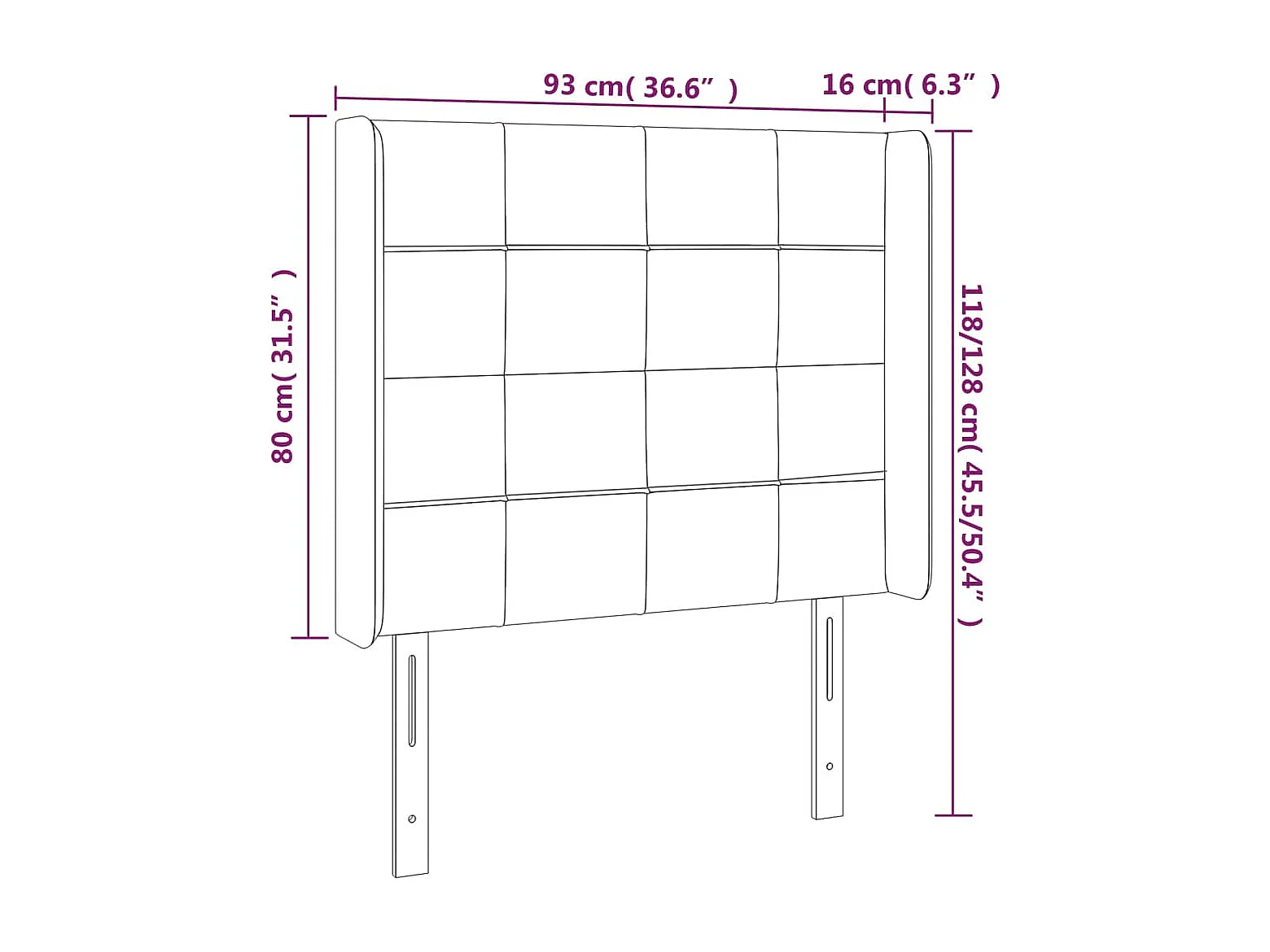 Tête de lit avec oreilles Gris foncé 93x16x118/128 cm Tissu