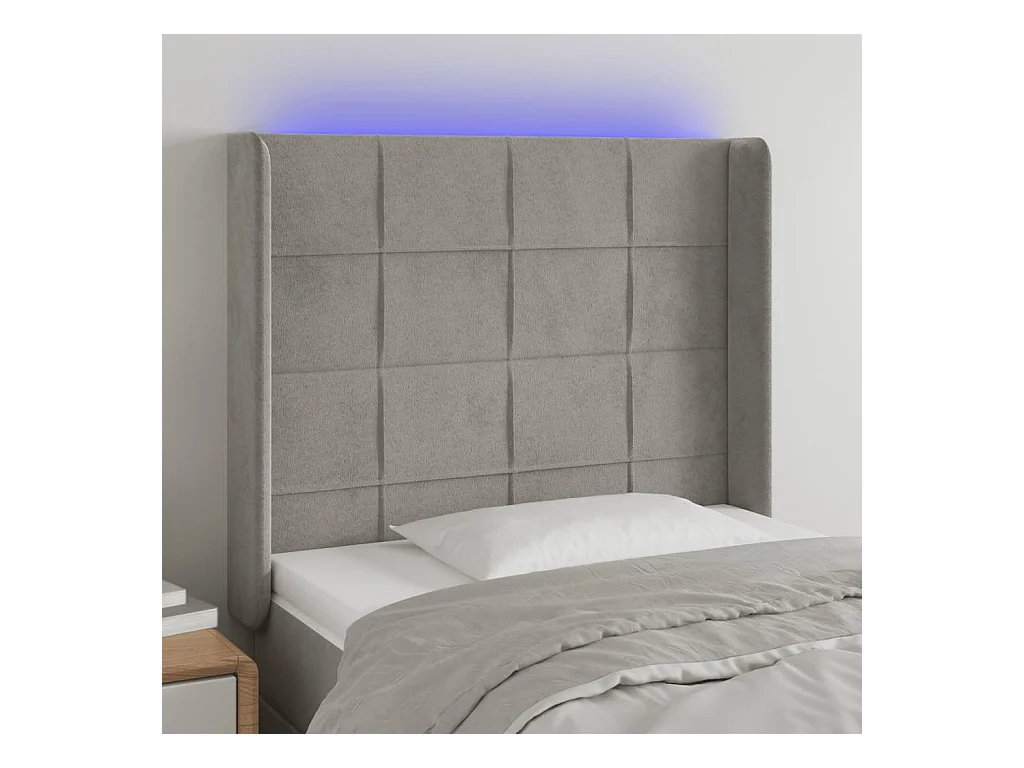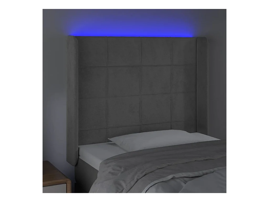 Tête de lit à LED Gris clair 93x16x118/128 cm Velours POI74480 BonneVie Meuble