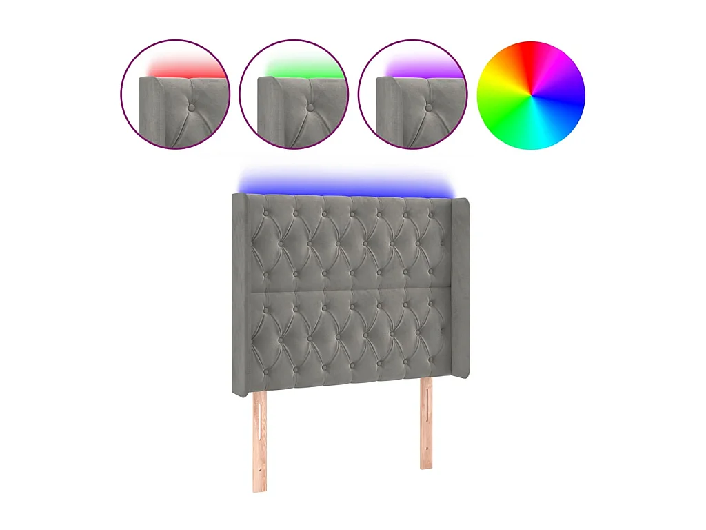 Tête de lit à LED Gris clair 93x16x118/128 cm Velours POI74480 BonneVie Meuble