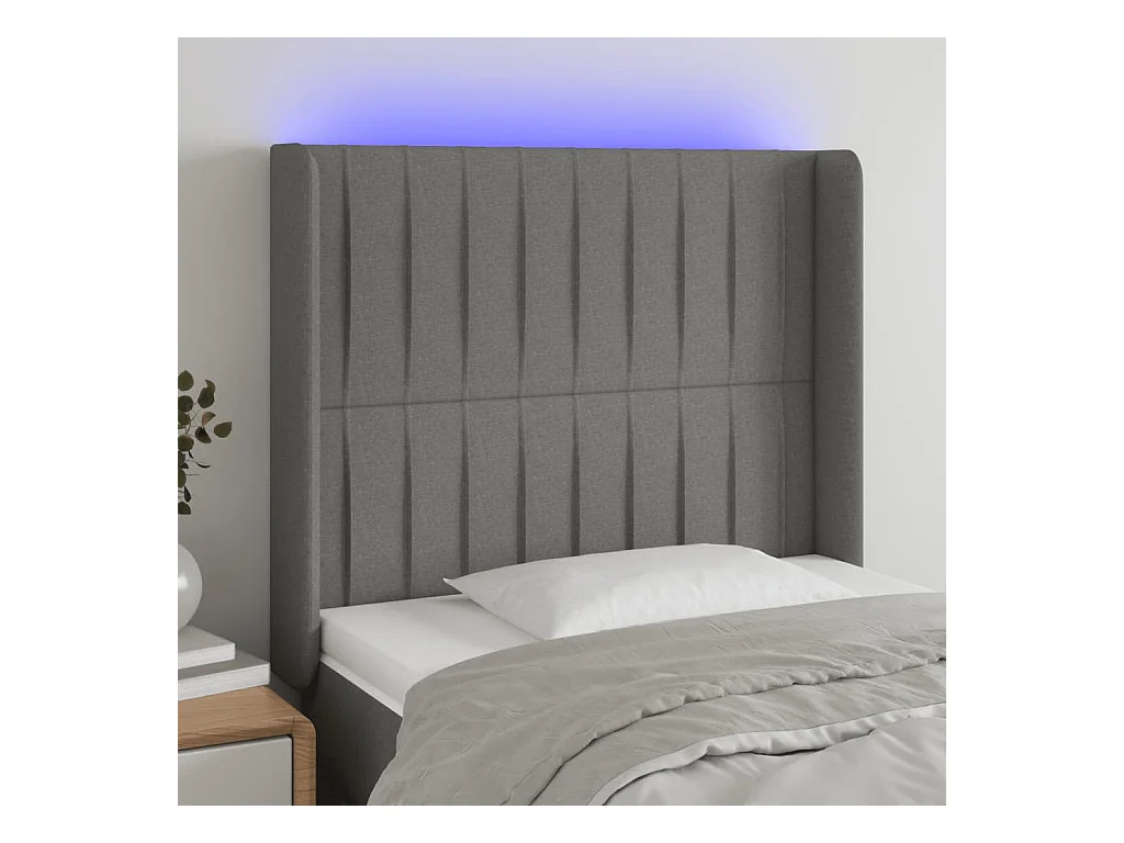 Tête de lit à LED Gris foncé 103x16x118/128 cm Tissu POI45597 BonneVie Meuble