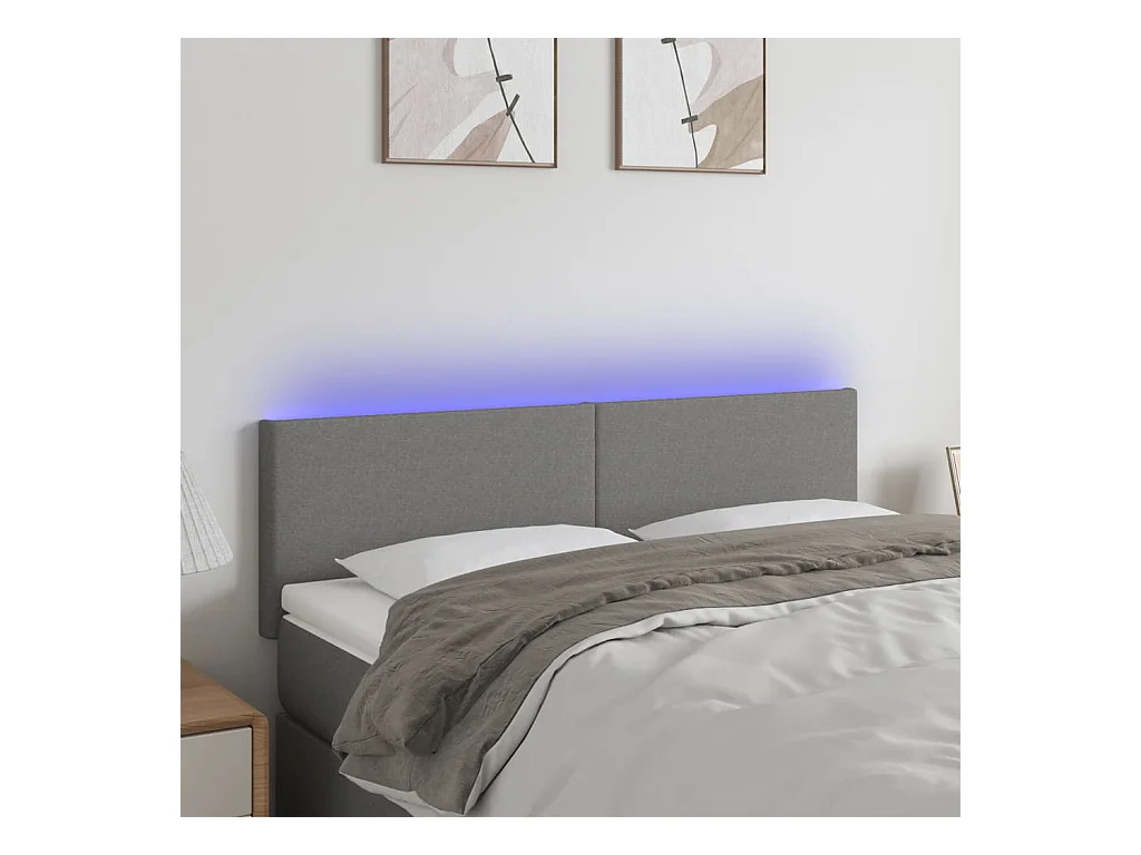 Tête de lit à LED Gris foncé 144x7x78/88 cm Tissu